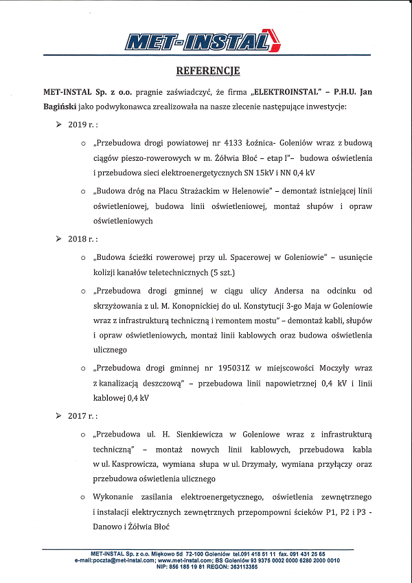 ELEKTROINSTAL - Linie Kablowe, Instalacje Elektryczne